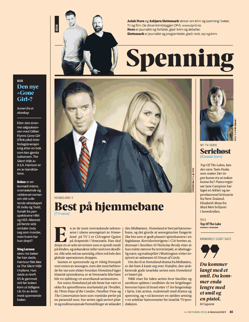Vi har tenkt en stund nå at vi har lyst å ta bloggen et steg eller to videre. Skriving og synsing om alt fra Nesbø til Homeland tar allerede en solid porsjon av arbeidsdagene våre, så vi ble veldig glade da A-Magasinet banket på døren og spurte om vi kunne gjøre noe sammen. Next level!